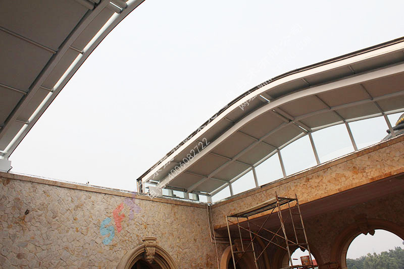 《大型移動開合屋頂-大型平移采光頂-移動陽光房-電動上懸翻轉雨棚》
